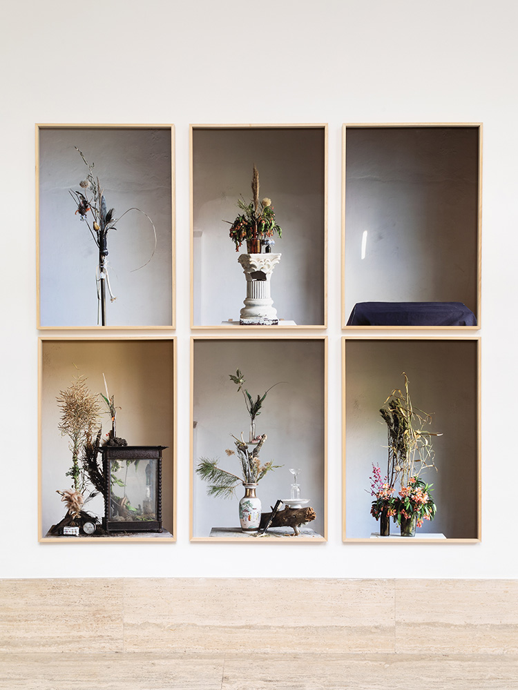 Le 36 opere fotografiche esposte, provenienti dalle serie Still Life (2020), A tutti gli effetti (2021), Aste (2021) Equilibri precari. Elevazioni (2022), sono tutte accomunate da un punto di origine condiviso anche con la pratica installativa dell’artista, e rappresentato dai grandi agglomerati plastici ed eterogenei di oggetti e frammenti di oggetti d’affezione che trasportano con sé la memoria e le stratificazioni del vissuto.