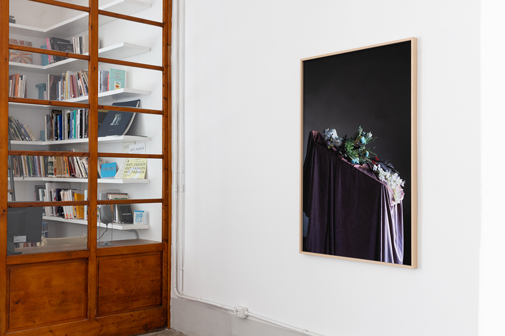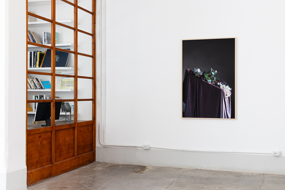 Nell’incertezza di essere di fronte ad una composizione costruita paratatticamente come il trittico di una pala d’altare o al contrario scandita dal ritmo di una sequenza filmica, diventiamo spettatori del modus operandi di Chiara Bettazzi, che fa esistere l’opera in uno stato di perenne transito e trasformazione, spostando il punto focale sul processo del suo farsi. Le sue installazioni site-specific da oltre un decennio prendono forma attingendo allo stesso repertorio di oggetti del quotidiano che l’artista raccoglie e conserva nel suo studio per poi comporli in agglomerati effimeri, plasmati da un moto perpetuo che oscilla tra il fare e il disfare, innescando un mutamento senza fine in cui gli oggetti possono anche rompersi, frantumarsi o innestarsi in altri materiali trovati. Dispositivi della meraviglia, dal titolo della prima installazione del 2013 1 , capaci di rigenerare ogni volta l’incantamento 1 della visione dal rimescolio del fondale della memoria. Analogamente nella fotografia, la scena della natura morta è il teatro di gesti che compongono e scompongono ciò che resiste al tempo e in esso si trasforma: vasellame, vetri rotti, piante, fiori finti, frammenti combusti, lembi di stoffa.