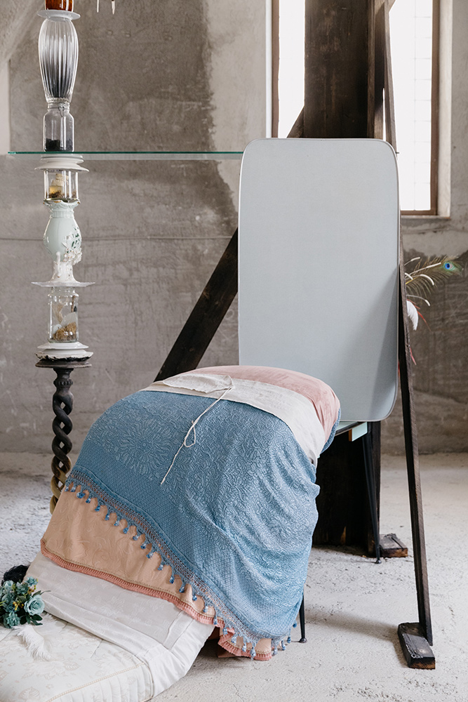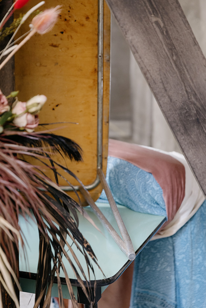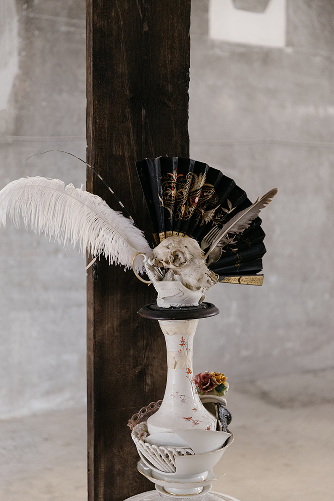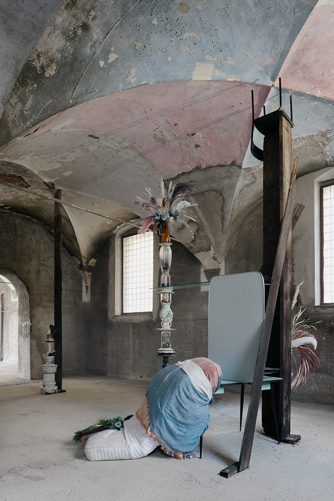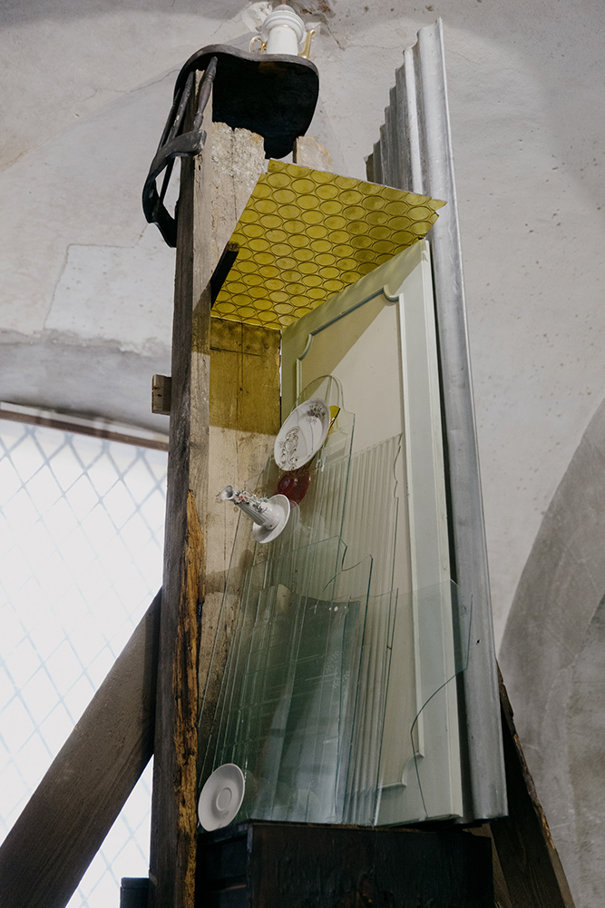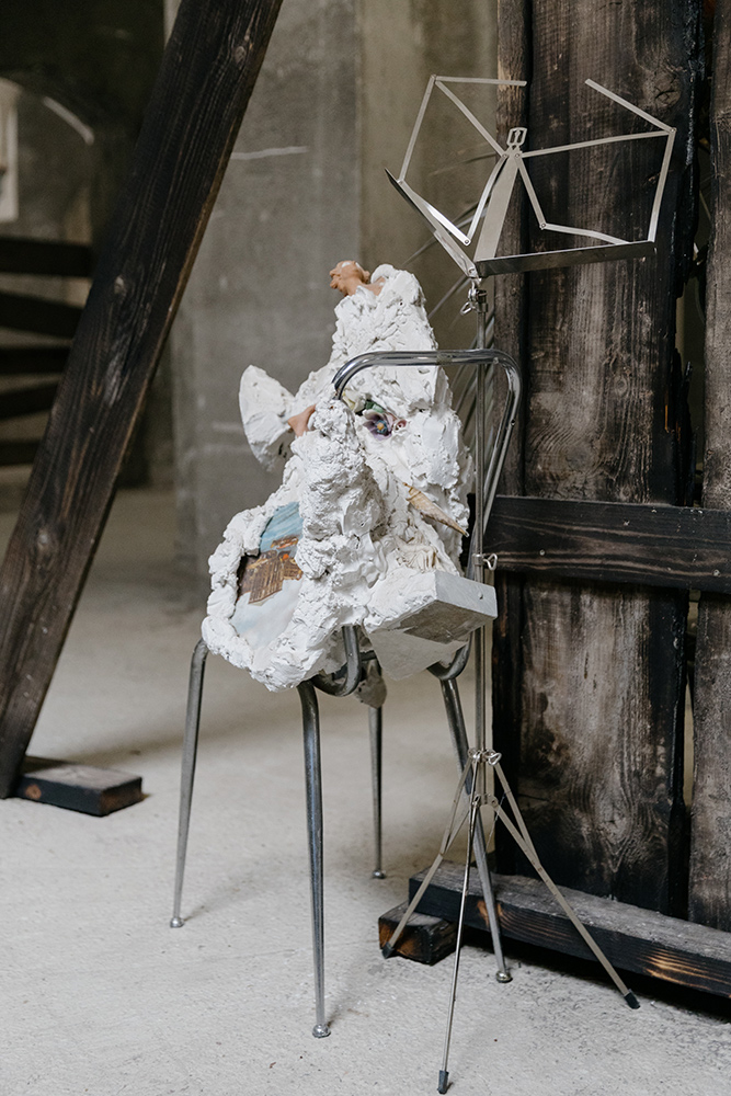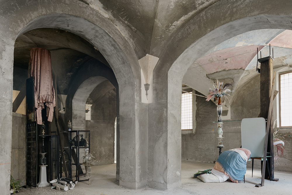 L’opera di Chiara Bettazzi si presenta come un monumento insieme fragile e potente, dedicato alle molte vite che hanno attraversato Sant’Orsola. Sei pilastri sono stati assemblati a partire da elementi artificiali e naturali: oggetti quotidiani o provenienti dal cantiere, spezzati, talvolta bruciati, piante autoctone. Le sculture dell’artista si innestano nei punti di intersezione delle volte dell’antica spezieria conventuale come totem. Queste “colonne della memoria” danno l’illusione di nuove strutture portanti, composte da frammenti di epoche diverse. Le loro composizioni ricordano nature morte dalla bellezza effimera. L’artista trasforma memorie individuali in memoria collettiva, attraverso un vocabolario di oggetti che sollecitano interrogativi: piccoli enigmi silenziosi, pronti a rivelarsi a chi sceglie davvero di esplorarli.