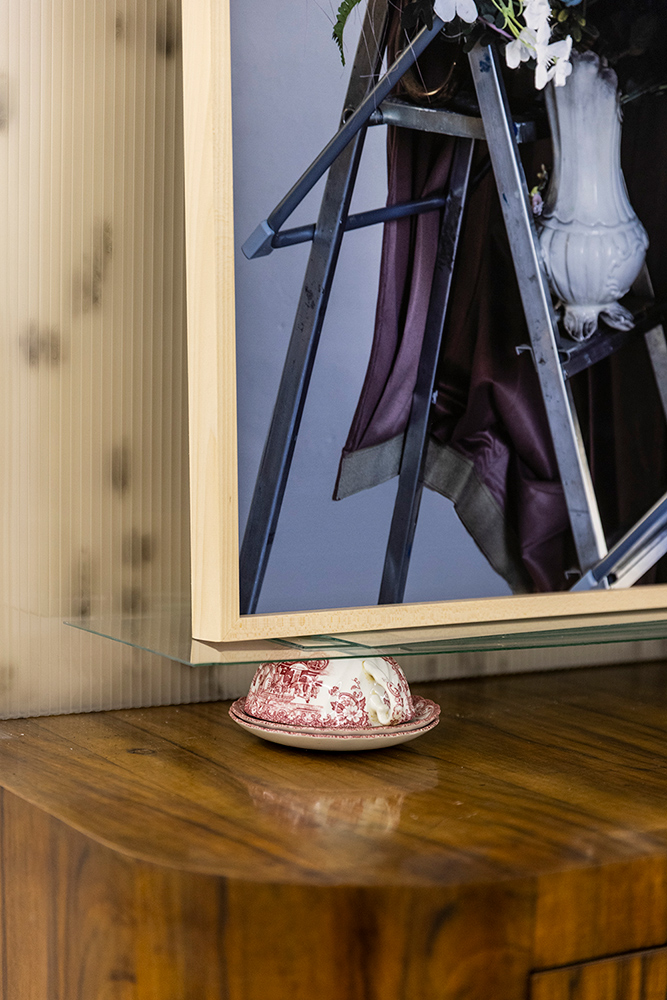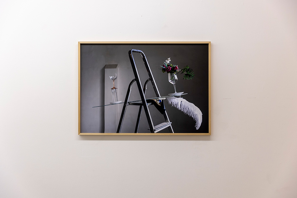 RETROSCENA La fotografia di Chiara Bettazzi esiste in una dimensione di prossimità con i linguaggi della scultura e dell’installazione, con cui condivide lo stesso vocabolario di oggetti del quotidiano che danno forma ai suoi soggetti. Nata come strumento di osservazione e controllo del processo installativo, essa acquisisce in seguito una sua autonomia, misurandosi in primis con il registro della natura morta. Le sue sono composizioni di oggetti e elementi naturali, costruite inizialmente sul piano orizzontale come vanitas o assemblage di memoria surrealista, e poi debordate fuori dal tavolo, cercando altri piani di appoggio in materiali trovati nello studio - scalei, paraventi, strutture provvisorie - che definiscono traiettorie precarie attorno a cui l’agglomerato oggettuale assume nuove sembianze scultoree. Lo scatto fotografico coglie incontri effimeri tra oggetti in uno stato di transitorietà, destinati poi a ritornare nell’anonimato del quotidiano. È una dimensione performativa della fotografia, soprattutto quando l’artista ci mostra anche i gesti del disporre, le cadute accidentali: sulla soglia tra composizione e scomposizione, dove l’immagine riattiva continuamente il processo, restituendo all’oggetto la possibilità di una nuova forma, in costante trasformazione.